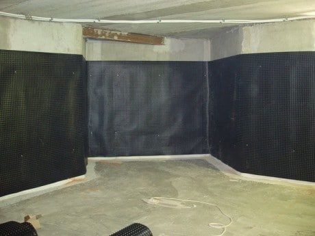 Lors de l'imperméabilisation des murs intérieurs, la base des clôtures est recouverte d'un film, suivi de l'installation d'un polymère ou d'un treillis métallique sous le plâtre.