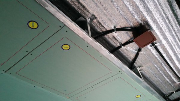 La principale exigence pour l'installation des panneaux chauffants Revolts est l'isolation de la dalle de plafond en béton, sinon la moitié de la chaleur ira dans le béton. Dans ce cas, il n'est pas nécessaire de coudre des plaques en mousse, il suffit de clouer une couche de plaques OSB sur les chevilles, après quoi vous pouvez poser le profil et fixer les radiateurs Revolts avec des vis autotaraudeuses, comme les cloisons sèches ordinaires.