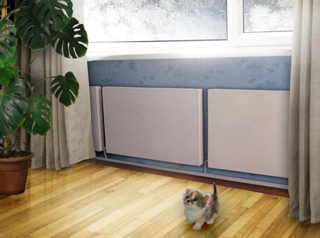- Les plinthes sont des dispositifs longs et étroits à installer dans la partie inférieure des murs, sous les fenêtres, dans les niches, etc.