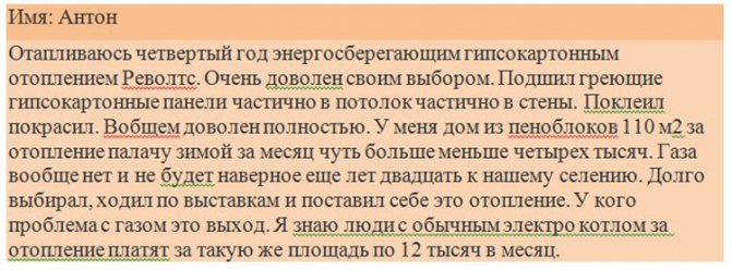 Et que disent les avis des propriétaires sur le chauffage des plaques de plâtre Revolts?