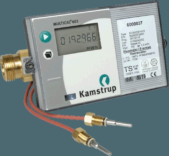 La photo montre un compteur de chaleur. Les compteurs de chaleur peuvent utiliser n'importe laquelle des unités répertoriées.