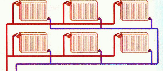 Un système de chauffage à deux tuyaux est un câblage de deux tuyaux. Un tuyau est l'alimentation en liquide de refroidissement chaud, le deuxième tuyau est le retour dans le système de chauffage, à travers lequel l'eau déjà refroidie des radiateurs pénètre dans la chaudière. Un tel système permet une connexion presque parallèle de tous les radiateurs, ce qui permet de configurer de manière flexible chaque radiateur séparément, sans affecter le fonctionnement des autres.