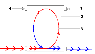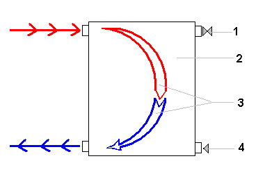 Légende: 1 - Grue Mayevsky 2 - Radiateurs de chauffage 3 - Sens du flux thermique 4 - Bouchon