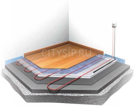 L'efficacité de ce type de chauffage pour les maisons à partir de panneaux SIP est indéniable. Premièrement, d'un point de vue purement physiologique, il est beaucoup plus utile de recevoir la chaleur directement des jambes et de garder généralement les membres inférieurs au chaud, et deuxièmement, un simple système de contrôle de la température - à l'aide de thermostats situés dans les murs, ainsi que intelligents. logiciel système qui ne permet pas de consommer de l'électricité en l'absence de locataires.