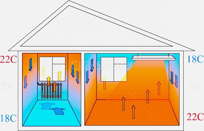 - Troisièmement, il est possible de minimiser l'apparition de flux de convection. La poussière ne monte pas du sol, ses particules ne brûlent pas, il n'y a donc pas d'odeur caractéristique dans la pièce. La même circonstance exclut complètement l'apparition de courants d'air.