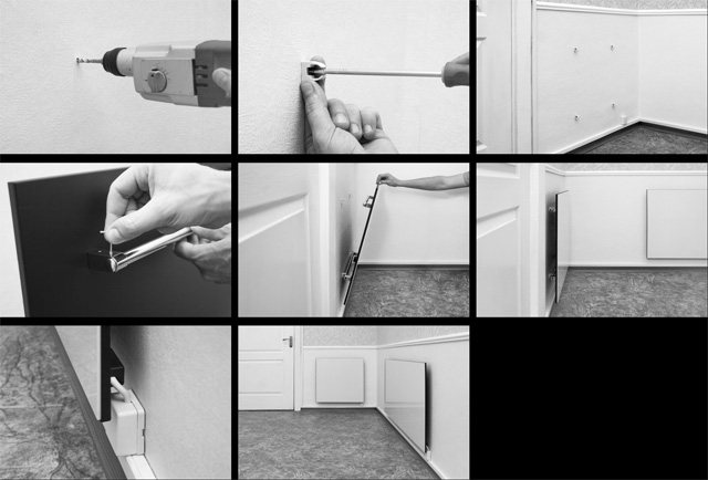 - Le panneau chauffant peut être fixé au mur très facilement... Le kit comprend des appareils spéciaux qui vous permettront de fixer l'appareil en toute sécurité. Percez 4 trous dans le mur à la distance requise et utilisez un tournevis et 4 vis autotaraudeuses pour visser les fixations.