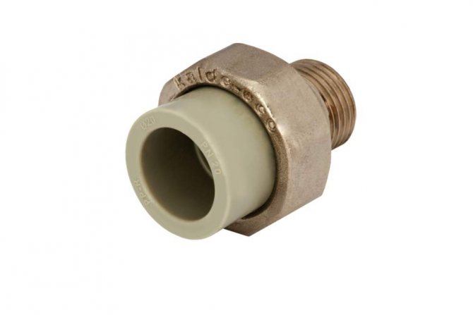 La robinetterie américaine se compose de 2 éléments principaux. La première partie d'un tel raccord doit être fixée aux filetages du vase d'expansion. La deuxième partie est attachée à la première. Un tuyau en polypropylène est soudé à la deuxième partie. Avant de visser le raccord sur le vase d'expansion, enroulez un produit d'étanchéité (généralement du lin) sur le raccord fileté et appliquez en plus un peu de pâte d'étanchéité spéciale. Visser la première partie du raccord américain à l'aide d'une clé à gaz conventionnelle.