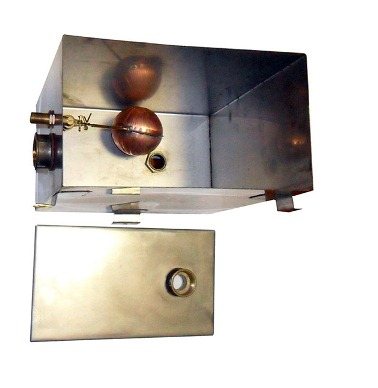 Réservoir ouvert - réservoir métallique, dans lequel la partie supérieure est simplement fermée avec un couvercle, avec un trou supplémentaire pour le remplissage d'eau. Le corps du réservoir est rond ou rectangulaire. Cette dernière option est plus pratique et fiable pour l'installation et la fixation, mais la ronde présente l'avantage de murs sans soudure scellés.