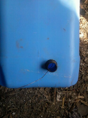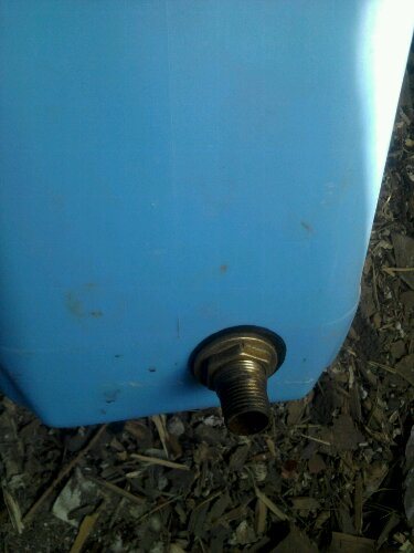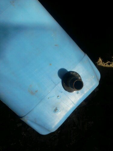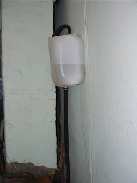 Le week-end, j'ai refait le chauffage, sorti le vase d'expansion jusqu'au grenier. L'ancien était fait d'un bidon en plastique dans lequel un adaptateur spécial en laiton était vissé pour que le tuyau puisse être connecté, je ne sais pas comment il s'appelle correctement, pour visser l'adaptateur en laiton dans le bidon, j'ai dû percer un tel trou (voir photo ci-dessous), au début, le chauffage était imparfait et quelques-uns depuis que mon système a bouilli, donc le bidon de sous l'amorce a conduit un peu, c'est clairement perceptible, mais néanmoins pendant deux hivers le bidon a servi fidèlement de vase d'expansion.