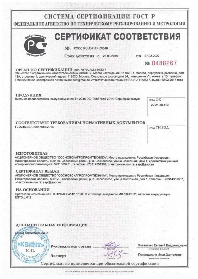 Le polypropylène expansé, presque de la même manière que le polypropylène ordinaire, conserve ses caractéristiques techniques dans la plage de température de fonctionnement de -40°C à +150°C. Le matériau a une faible inflammabilité et n'émet pas de gaz toxiques lors de la combustion. Il est considéré comme respectueux de l'environnement et autorisé à entrer en contact avec les aliments. Possède des taux élevés de vibration et d'isolation thermique, ainsi que l'absorption du bruit. Le polypropylène expansé est idéal pour les outils à main. Facile à installer. La durée de vie du matériau est d'au moins 20 ans.