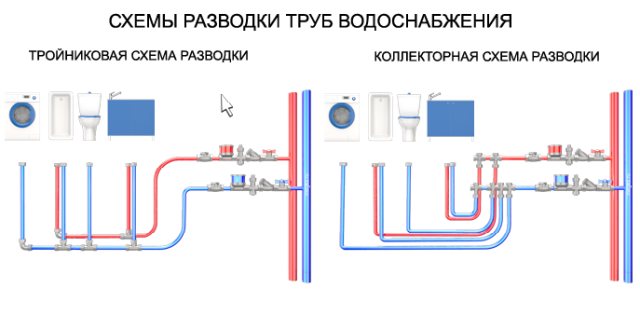 L'acheminement des tuyaux en polypropylène se fait également de différentes manières. Les plus largement utilisés sont les systèmes série et parallèle. Une caractéristique distinctive d'un système séquentiel ou en té est que les tuyaux du principal aux consommateurs d'eau sont situés séquentiellement les uns par rapport aux autres.