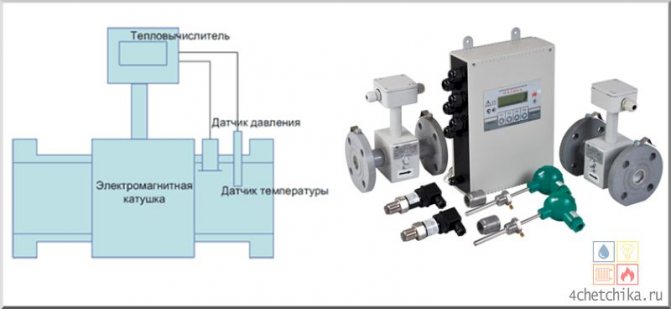 Cet appareil est conçu pour calculer la chaleur dans de grands volumes.Il est capable de contrôler la circulation de l'énergie de chauffage dans les grandes installations résidentielles, industrielles, commerciales, de bureau et autres. Fonctionne sur le principe de la modification des impulsions électromagnétiques traversant la colonne d'eau. Pour cela, le compteur de chaleur est équipé d'une bobine électromagnétique qui génère les champs nécessaires: lorsque l'eau traverse la zone magnétique, elle génère un courant dont la force sert de base à la mesure.
