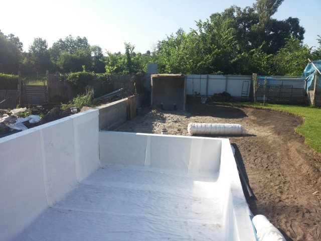 - une fois la couche d'imperméabilisation complètement sèche, nous vérifions la piscine pour les fuites;