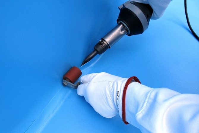 Avant de coller le film PVC pour piscine, préparez la machine à souder, qui est équipée de divers accessoires. Le régime de température le plus favorable pour souder le matériau est de +15 degrés et plus. Les travaux de soudage seront effectués plus efficacement si la température de l'air est élevée.