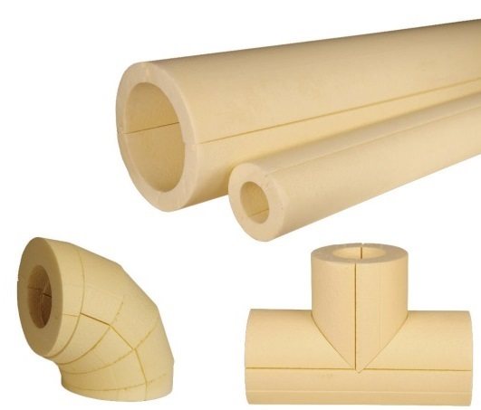 Aussi, un matériau polymère devenu traditionnel, appelé, en raison de sa rigidité, "coque". L'isolation se compose de deux hémisphères avec des évidements pour la taille des éléments isolés du pipeline.