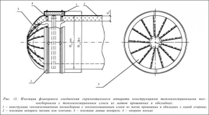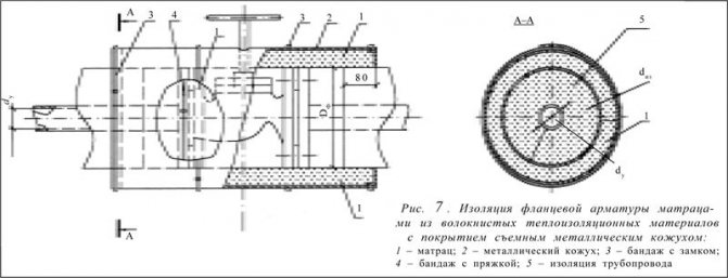 Lors de l'isolation des raccords, des raccords à bride de canalisations et d'appareils, les nattes sont utilisées sous la forme de matelas avec des couvertures en fibre de verre à une température de surface isolée jusqu'à 450 ° C et avec des couvertures en tissu de silice à une température de surface isolée de plus de 450 ° C.