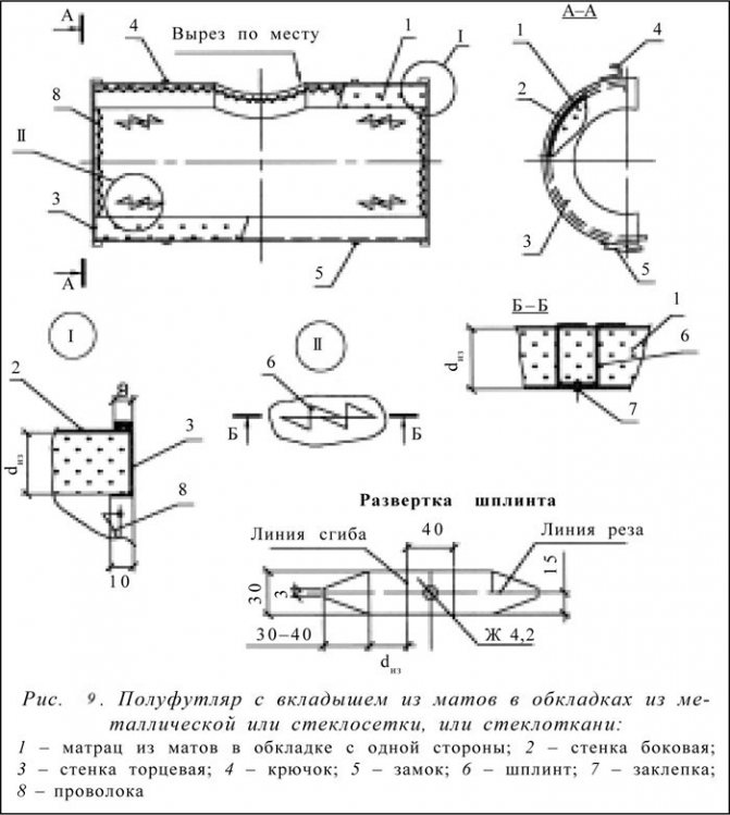 Structures d'isolation thermique pour canalisations à base de cylindres et semi-cylindres en matériaux d'isolation thermique fibreux (4.2.3). Les cylindres d'isolation thermique en laine minérale sur un liant synthétique (par exemple, selon TU 5762-010-45757203-01) sont un matériau d'isolation thermique efficace moderne avec des performances thermiques améliorées par rapport aux matériaux précédemment produits et utilisés en Russie pour le thermique. isolation des canalisations
