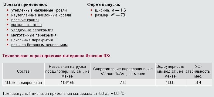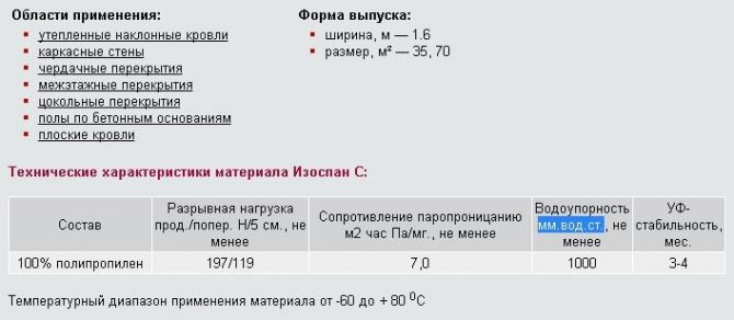 Izospan S a une structure et des caractéristiques similaires, une caractéristique distinctive de l'isolation est une grande marge de sécurité et, par conséquent, une fiabilité et une durabilité élevées. La charge de rupture est de 197/119 N / 5 cm et la densité est de 90 g / m2. m. Le coût d'un imperméabilisant de type C dépasse les analogues du groupe B.