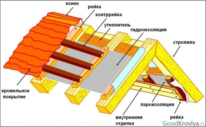 Avant de procéder à l'installation, il est nécessaire d'avoir une idée de la structure du toit et de la séquence de mise en place des couches du «gâteau de toiture». L'isolation par le haut doit être imperméabilisée et un pare-vapeur doit être monté par le bas. Les deux films sont fixés aux pieds des chevrons du toit.