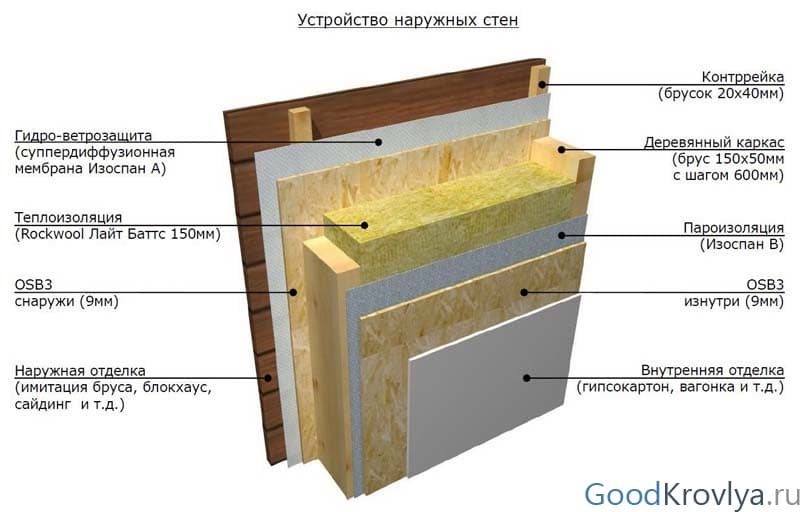 Les températures intérieure et extérieure sont toujours différentes. En hiver, une différence de 40 degrés est courante. En raison de la différence de pression partielle, l'humidité sous forme de vapeurs qui sortent peut se condenser dans les murs. Par exemple, en intérieur +20 degrés. Humidité 60%. Par conséquent, à une température d'environ +12, la condensation s'accumule.L'emplacement du point est influencé par de nombreux autres facteurs. La différence de température, l'épaisseur des couches de matériaux qui composent le mur, les matériaux qui composent le mur, etc. L'isolant est mouillé et ses propriétés d'isolation thermique sont réduites. Izospan b neutralise de telles situations. Les règles sont simples, le film pare-vapeur est monté sur le dessus de l'isolant. Ce n'est que dans ce cas qu'une barrière d'ambiance - isolation thermique - sera créée.