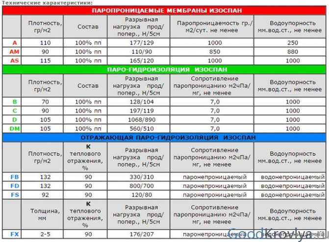 Le fabricant a développé toute une gamme de matériaux d'étanchéité. Certains types d'Izospan et leur utilisation sont assez polyvalents. D'autres modifications du produit, au contraire, sont hautement spécialisées et révèlent au maximum les qualités de protection dans certaines conditions d'installation.