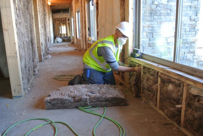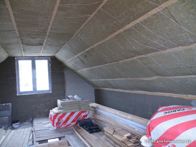 Lorsque tout est prêt, l'installation de la laine minérale est réalisée à l'aide de la technologie suivante: