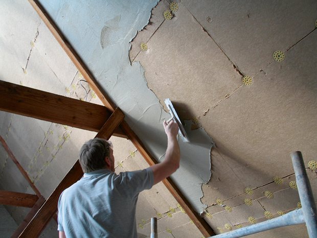Les surfaces en bois sont également isolées avec du plâtre. Une nuance importante est qu'une caisse doit d'abord être complétée sur un mur en bois, puis ensuite procéder à l'application de la composition de plâtre.