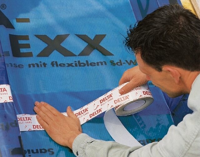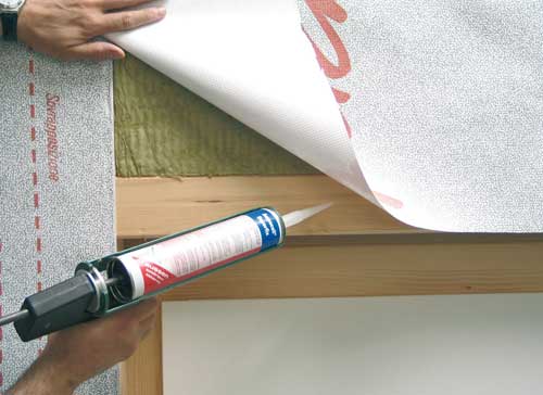 - Dois-je coller les joints de la membrane coupe-vent ? C'est une condition préalable que tous les fabricants prescrivent. C'est le seul moyen d'obtenir une étanchéité absolue du joint. À ces fins, tous les rubans auto-adhésifs conviennent, mais il est préférable d'utiliser du ruban de construction renforcé. Bien que son prix soit beaucoup plus élevé que celui du papier habituel, il garantit d'excellentes performances pendant de nombreuses décennies. Il peut également être utilisé pour réparer une lacune. Mais mettez d'abord un joint à l'intérieur sous la forme d'un morceau de pare-brise, puis collez le tout.