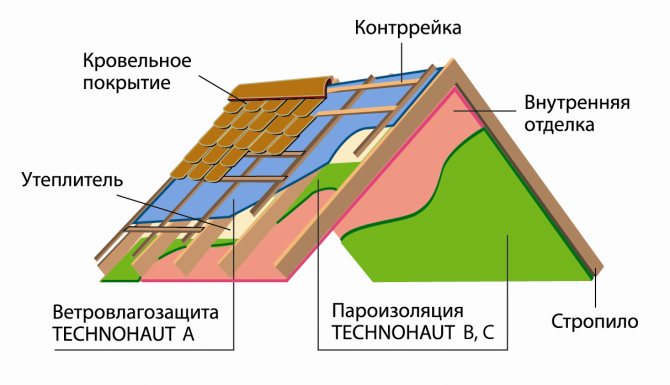 Astuce: une membrane coupe-vent monocouche ou bicouche est utilisée uniquement à l'extérieur sur le dessus de l'isolant, et la membrane pare-vapeur de l'intérieur de la maison, comme couche de finition avant l'installation de cloisons sèches.