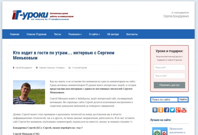 Ma première interview est apparue sur Internet, je l'ai donnée à un enseignant très talentueux, Sergei Bondarenko, qui, en plus d'enseigner aux étudiants, gère également un bon site Web dédié à l'enseignement de l'informatique.