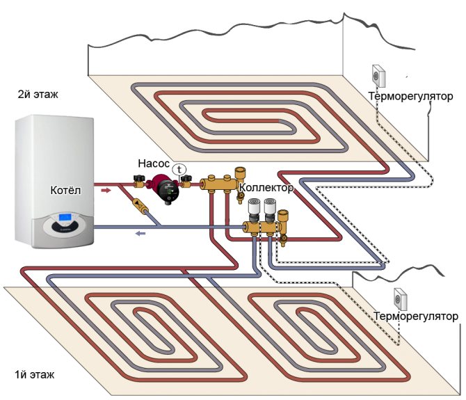 - Comment connecter un plancher d'eau chaude dans une maison à partir d'une chaudière à gaz?