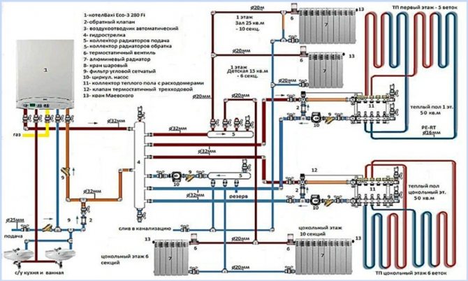 Une fuite faible (goutte à goutte) peut être éliminée sans vidanger l'eau et sans arrêter le chauffage de la maison. L'élimination de flux d'intensités différentes n'est possible que sur des tuyaux secs et refroidis. Par conséquent, il sera utile d'organiser des lignes de dérivation (dérivation), en divisant le système en plusieurs circuits et sections indépendantes à l'aide de vannes à bille installées.