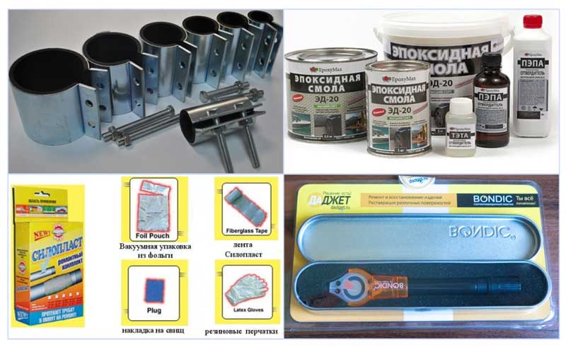Même les tuyaux métalliques fortement corrodés ont une résistance résiduelle élevée. Par conséquent, lors des réparations, des forces de pression importantes peuvent leur être appliquées et des colliers serrés avec des boulons peuvent être utilisés. Pour leur réparation urgente, vous aurez peut-être besoin de: