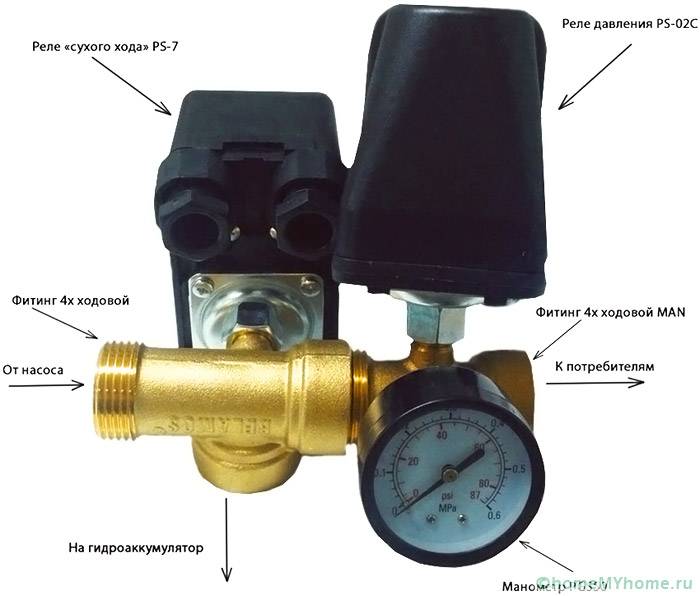 Ces 2 unités doivent être connectées à la pompe et le relais doit être situé au milieu et plus près de l'accumulateur. Il existe des modèles de relais qui peuvent être montés directement sur la surface du corps de pompe, même submersible. L'installation du système d'alimentation en eau doit être correcte et il vaut donc la peine de se familiariser avec le principe de fonctionnement de chaque composant avant de l'assembler.