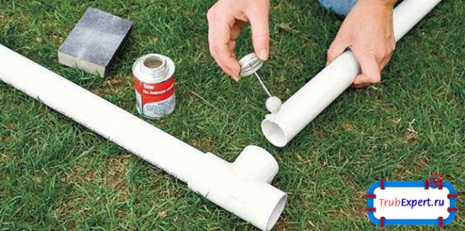 L'essentiel est d'assurer un amarrage étanche et de haute qualité des éléments. Pour assembler les pièces, utilisez une colle spéciale pour tuyaux en PVC. Le soi-disant «soudage à froid» vous permet de construire un système d'alimentation en eau avec des coûts de main-d'œuvre minimes. Cependant, l'utilisation de la colle présente un certain nombre de nuances qui doivent être étudiées avant de commencer les travaux.