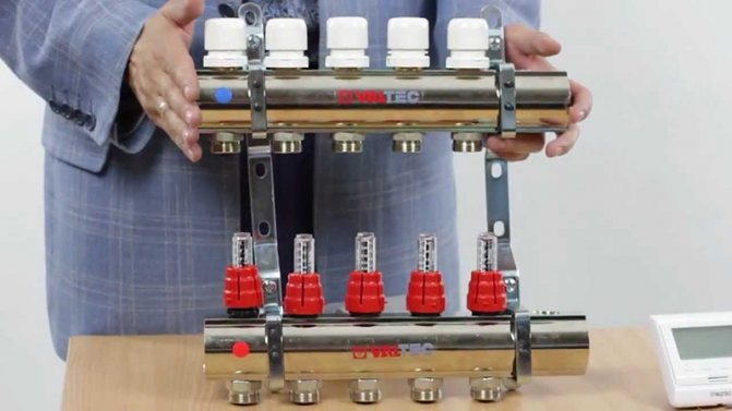 Lors du déplacement du liquide de refroidissement dans le système, le gaz s'accumule aux points les plus élevés. Pour le système de chauffage par le sol, il s'agit d'un distributeur collecteur (peigne). Lors de l'installation, des robinets Mayevsky ou des dispositifs d'extraction d'air automatiques y sont vissés.