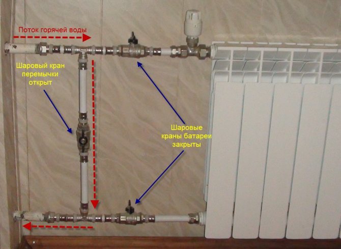Vous ne pouvez rincer le radiateur dans l'appartement que s'il y a des robinets aux points de sa connexion à la colonne montante, et pendant la saison de chauffage, vous aurez besoin d'un bypass