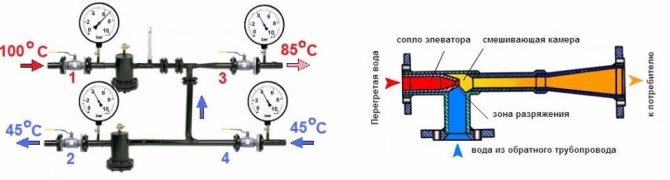 Dans ce cas, le fonctionnement de l'unité d'ascenseur sans buse pendant deux à trois jours est souvent utile. Lorsque les vannes d'entrée, de maison et d'eau chaude sont fermées, l'élévateur à jet d'eau est retiré, la buse en est retirée et l'aspiration (bride inférieure de l'élévateur) est étouffée avec une crêpe en acier.