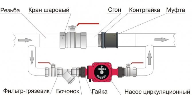 Il est nécessaire d'installer un clapet anti-retour sur le tuyau de refoulement de la pompe de circulation. Sans elle, l'eau froide peut pénétrer dans le pipeline et circuler en boucle fermée au lieu d'eau chaude. Ce qui peut provoquer de la condensation dans la pompe.