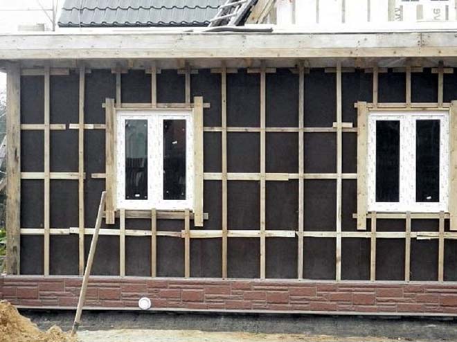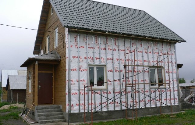 Avant de commencer à terminer les travaux à la maison, vous devez installer une autre rangée de caisses. Il est cloué directement à la base du bâtiment. Ce lattage est nécessaire pour créer des conduits ventilés. Après son agencement, vous pouvez commencer à revêtir le bâtiment de l'extérieur avec des matériaux de finition, le plus souvent un bardage est utilisé pour ces travaux.