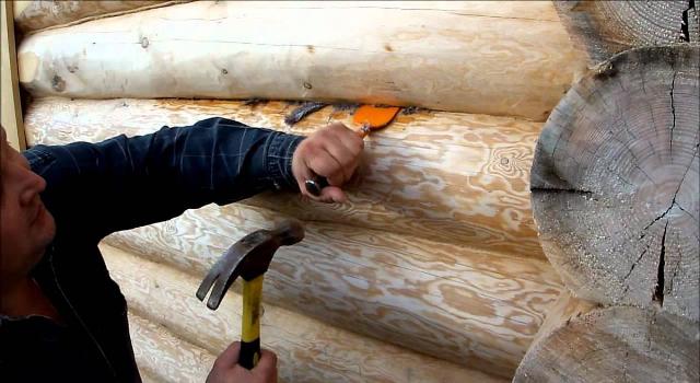 - Fissures. Si la maison est construite en rondins arrondis, il est nécessaire de calfeutrer l'espace inter-couronne avec un matériau naturel et seulement après cela, procéder au revêtement avec du penoplex.