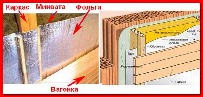 La deuxième façon d'isoler un bain en brique est de construire un autre mur près des murs, seulement un en bois avec une couche d'isolation thermique. Pour cela, un cadre en lattes de bois est installé sur une brique.