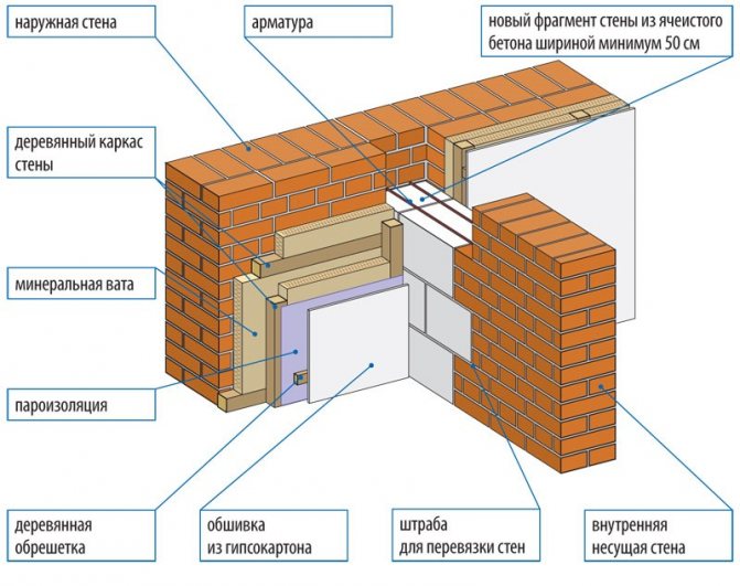- Mais maintenant, vous devez décider d'utiliser ou non une isolation supplémentaire. Si "oui", alors une caisse est assemblée le long du nouveau mur, où l'isolant thermique est posé. Un pare-vapeur ou un matériau en rouleau d'aluminium est installé au-dessus du lattage. S'il n'y a pas besoin d'isolation, la caisse est montée de toute façon, uniquement à partir de lattes de faible épaisseur. Un matériau d'étanchéité est tendu sur le dessus du cadre.