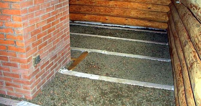 En plus des murs, l'isolation thermique interne d'un bain de brique doit inclure des mesures pour réduire les pertes de chaleur à travers les planchers. La séquence d'actions ici sera la suivante: