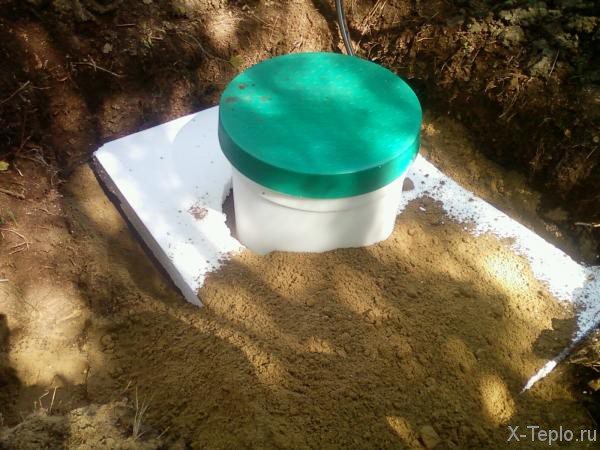 Nous commençons à isoler avec ce matériau en creusant une tranchée autour de lui, pas moins de 1,5 mètre. Après cela, dans la tranchée créée, nous installons des demi-anneaux en polystyrène de taille appropriée. À l'aide d'un mécanisme spécial, les couches d'isolation sont fixées aux parois du puits, après quoi la tranchée doit être enterrée. La partie supérieure de la fosse doit également être correctement isolée.