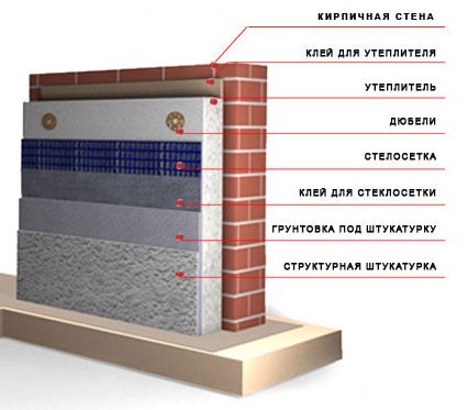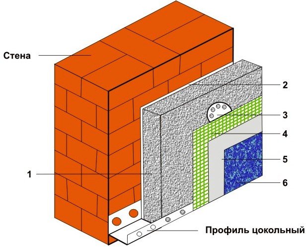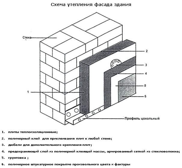 Schéma de fixation de la mousse de polystyrène au mur. Parmi ceux-ci, la meilleure option est l'isolation des murs extérieurs, car: