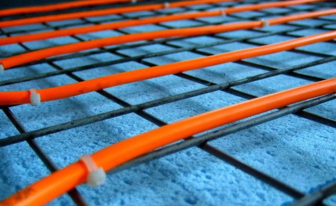 Un capteur thermique est placé entre les spires du câble. Il est placé dans une housse de protection. Tous les fils sont vérifiés pour la résistance, connectés au réseau, placés dans une boîte de jonction, qui est située sur le sol. Il est fermé par une chape.