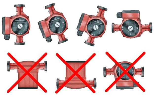 De plus, il est nécessaire d'installer correctement la pompe de circulation. La roue ou le rotor humide de la pompe doit être horizontal. Sinon, la pompe pour chauffage par le sol installée en position verticale perdra jusqu'à 30 à 40% de sa puissance. Pour que l'antigel circule normalement dans le circuit d'eau, la hauteur de la pompe doit être de 50 à 60% plus élevée que dans le cas de l'eau ordinaire. C'est la première chose.