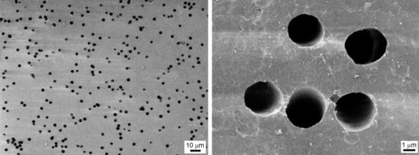 La structure de la couche principale de la membrane pare-vapeur au microscope.