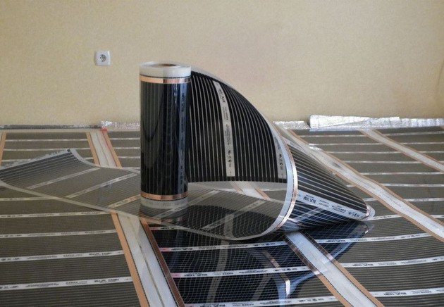 - Chauffage par le sol en film de carbone (le deuxième nom est le carbone). Idéal pour la pose sous un parquet naturel ou un sol stratifié. L'installation sous linoléum ou tapis est autorisée. Les radiateurs au carbone utilisent une méthode de chauffage innovante: l'infrarouge.